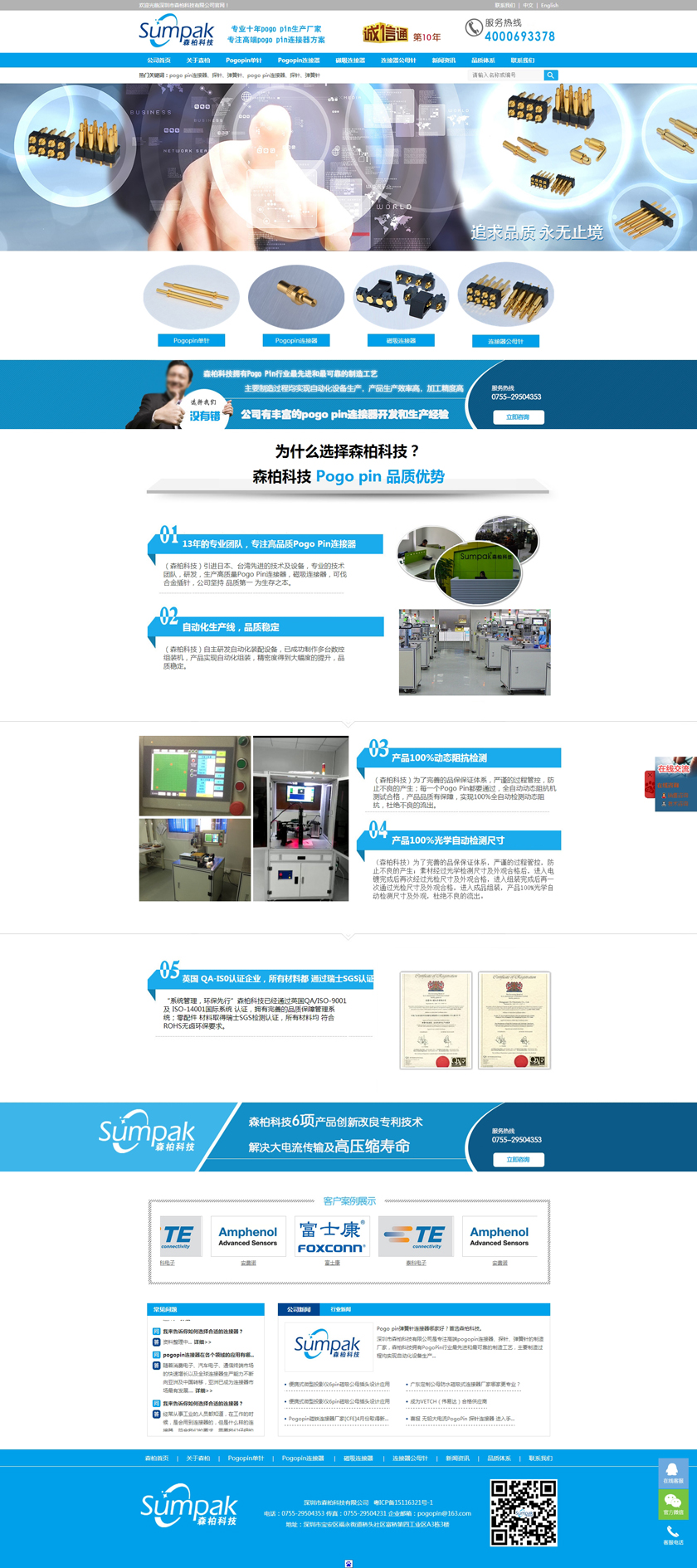 Project Description 深圳市森柏科技有限公司是专注高端pogo pin连接器、探针、弹簧针的制造厂家,森柏科技拥有Pogo Pin行业最先进和最可靠的制造工艺,主要制造过程均实现自动化设备生产,产品生产效率高,加工精度高,重要检测过程均采用自动化快速识别系统,大大降低了人为操作失误的风险,极大的提升了检测效率,工艺过程得到极大的改善和满足。因此产品质量和稳定性获得巨大突破。 Official website address 奉贤http://www.zgsumpak.com I want to share